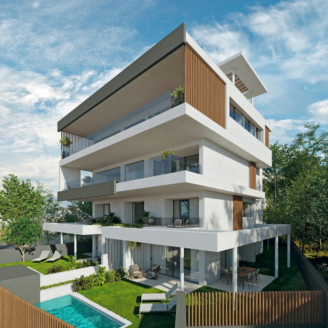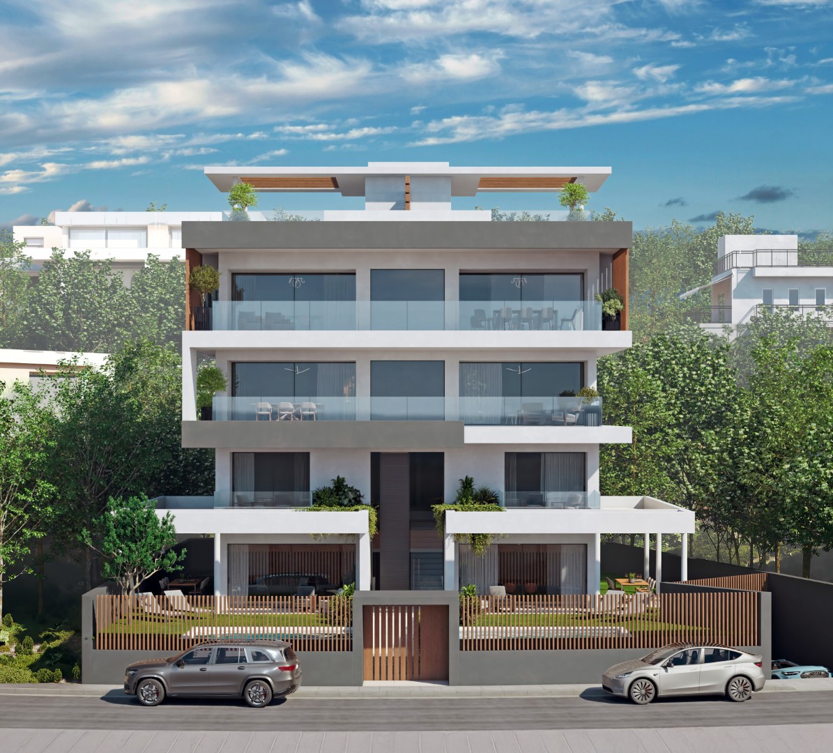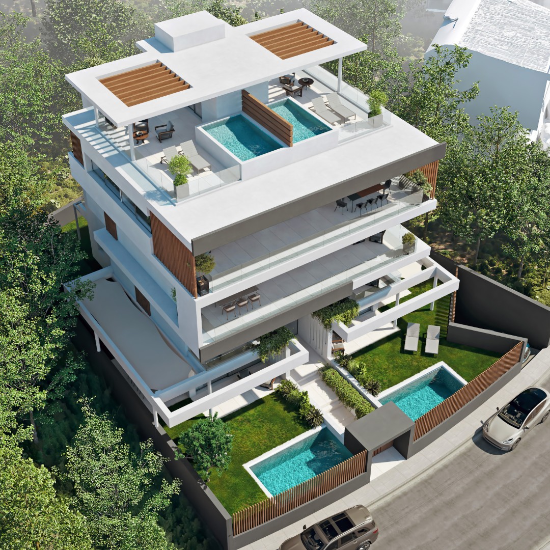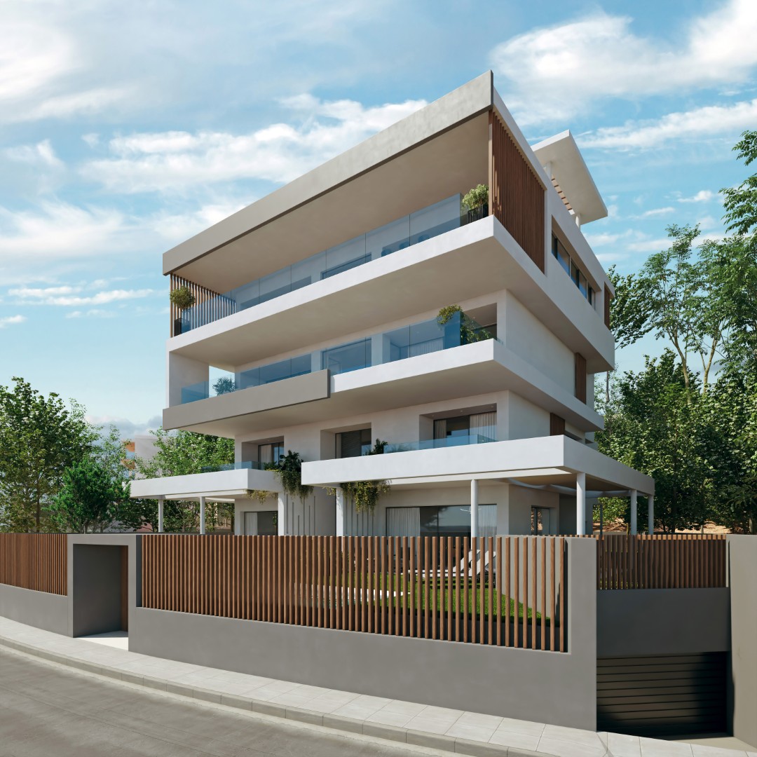 Description: Study of a New Four-Storey Building of Maisonettes and Apartments with Basement, Roof and Swimming Pools in the Open Space and Roof, 16 Palama Street, Alimos