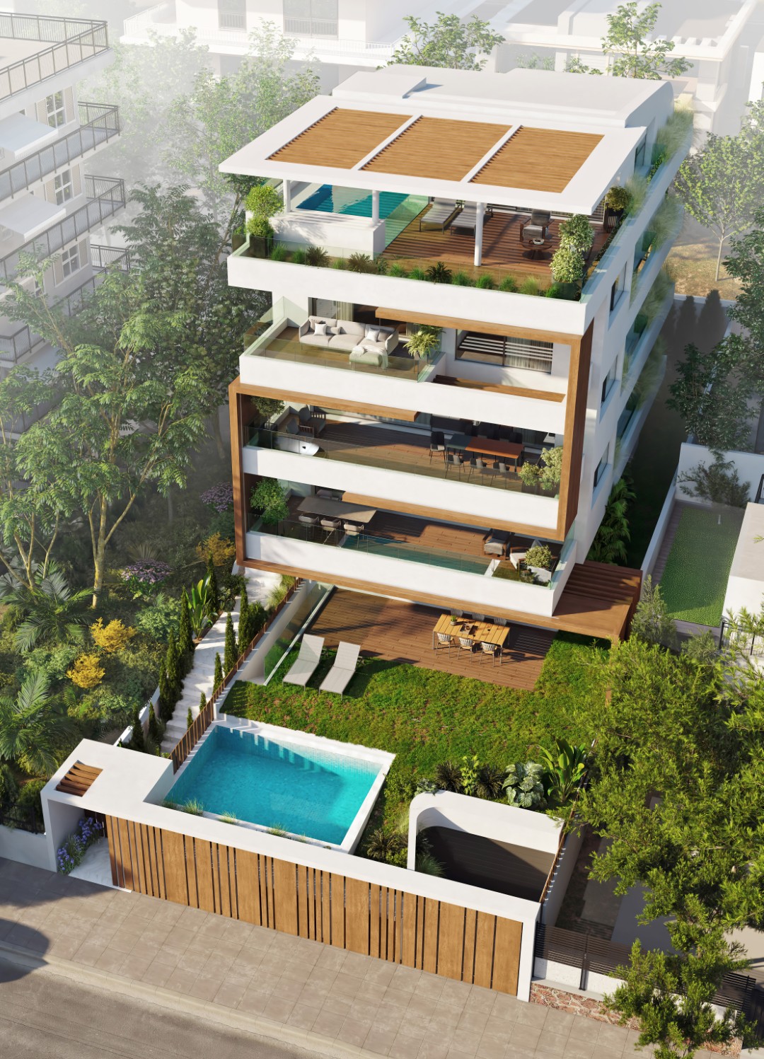 Περιγραφή: Μελέτη Νέου Τετραώροφου Κτιρίου Μεζονετών – Διαμερισμάτων με Υπόγειο, Στέγη – Σοφίτα & Πισίνες, Θετίδος 24, Βάρκιζα, Δήμος Βάρης-Βούλας-Βουλιαγμένης